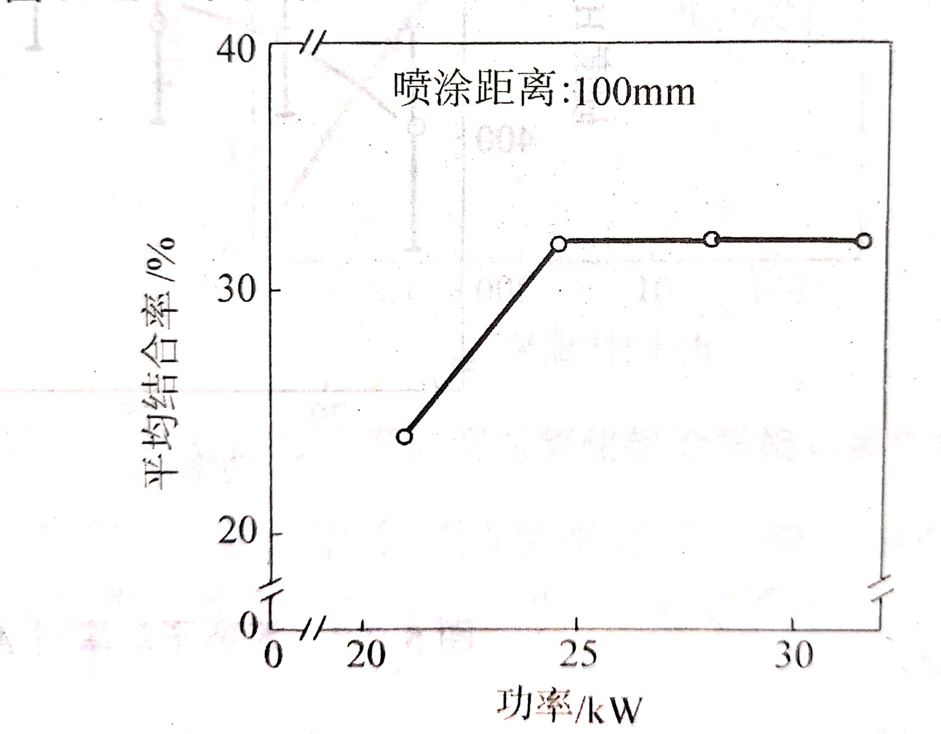 圖(4)等離子功率對氧化鋁涂層粒子間結合率的影響
